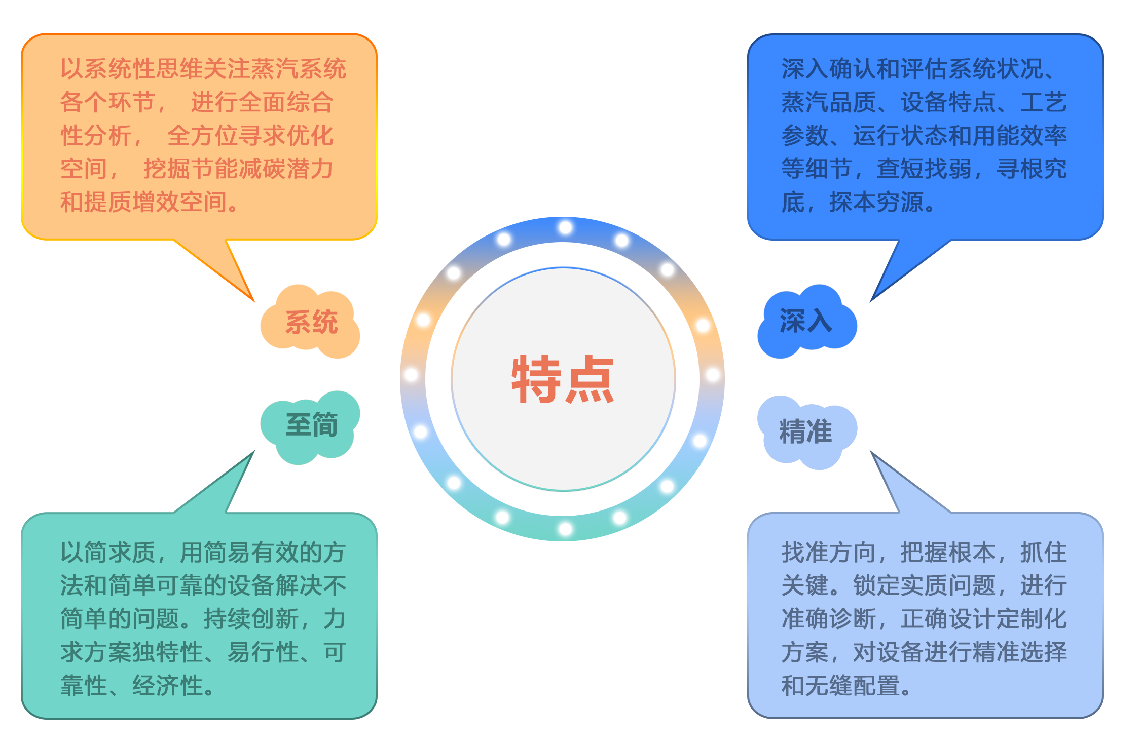 技術優勢  孚雷德的技術團隊在蒸汽節能領域有20多年經驗,服務過1000多家企業,提供過500多次蒸汽系統培訓。孚雷德的技術具備系統、完整、專業、深入、精準、獨到、全面的特點。我們深入考察和精準診斷,化繁為簡,以簡求質,精益求精,提供系統性整體定制方案,并保證方案的獨特性、易行性、可靠性、經濟性,為客戶創造更大價值。
